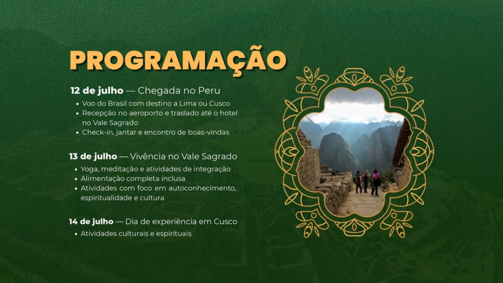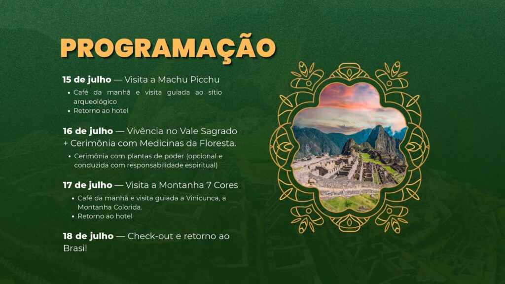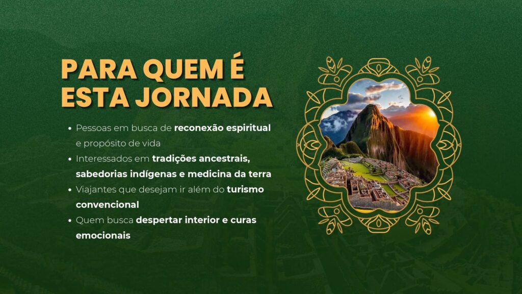 Essa jornada vai além do turismo: é um reencontro com a alma, propósito e missão de vida.